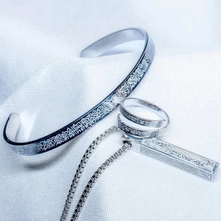 Le verset Ayat al-Kursi est réputé pour sa puissante protection contre le mauvais œil et les influences négatives.Portez ce collier comme un bouclier spirituel, vous assurant paix et tranquillité d'esprit.Sentez-vous protégé(e) et confiant(e) en toutes circonstances.
